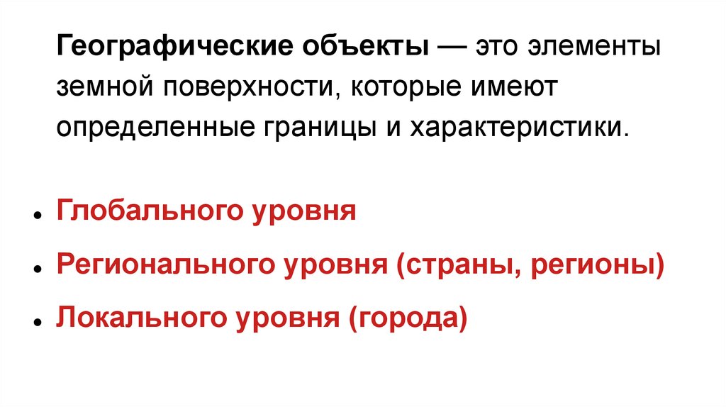 Географические объекты — это элементыземной поверхности, которые имеют