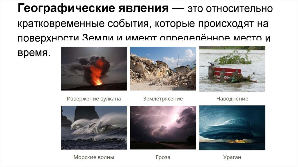 Географические явления — это относительнократковременные события, которые происходят на