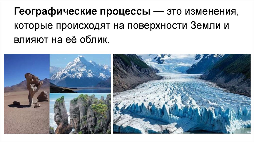 Географические процессы — это изменения,которые происходят на поверхности Земли и