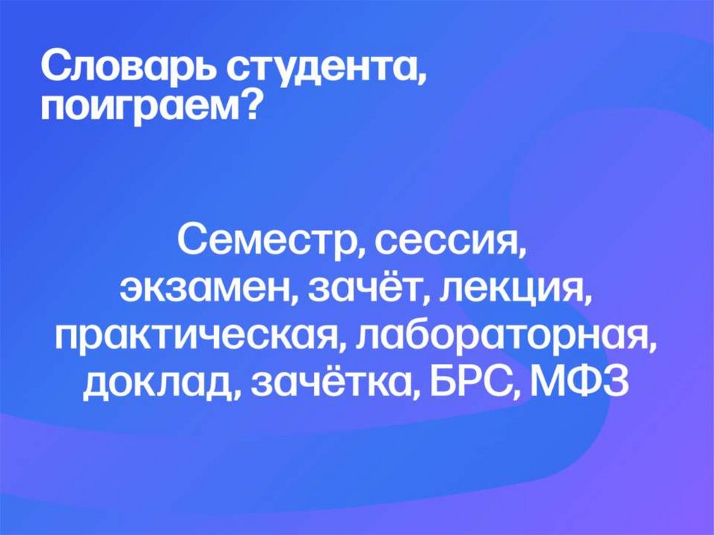 Семестр, сессия, экзамен, зачёт, лекция, практическая, лабораторная, доклад, зачётка, БРС, МФЗ