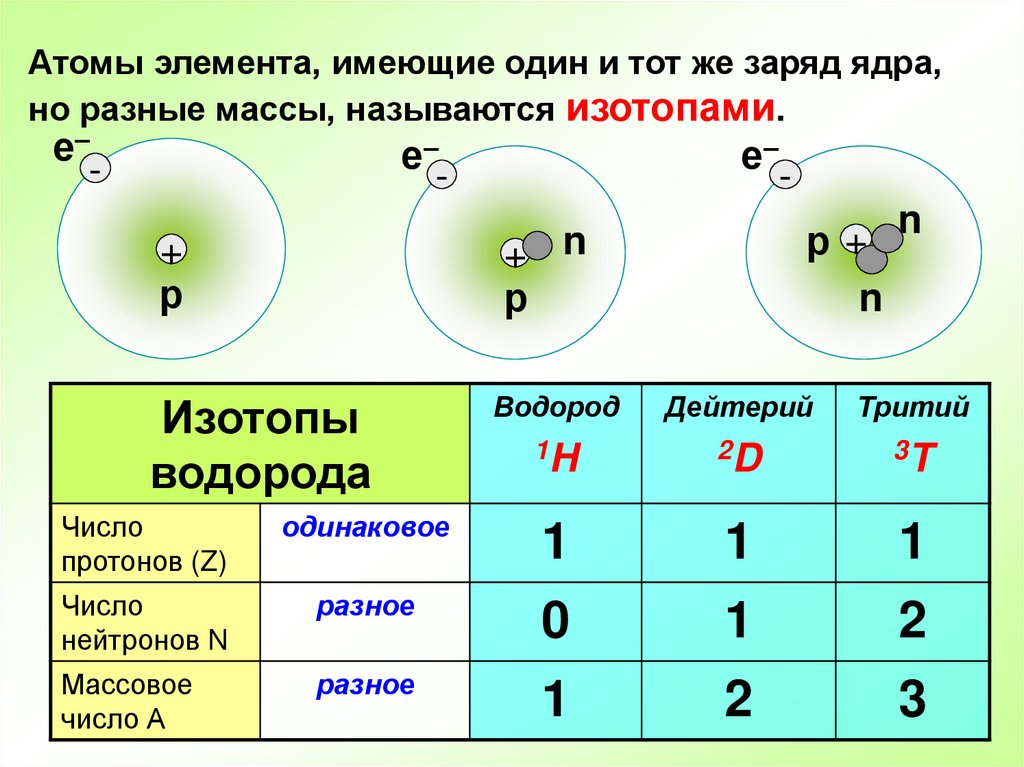 Атомы элемента, имеющие один и тот же заряд ядра,но разные массы, называются изотопами.