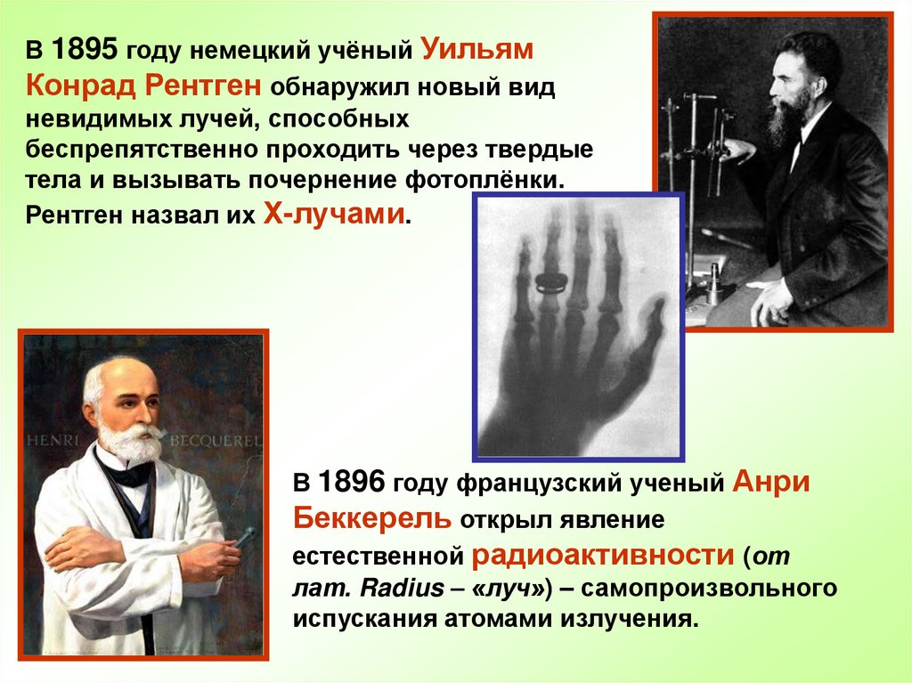 В 1895 году немецкий учёный УильямКонрад Рентген обнаружил новый вид