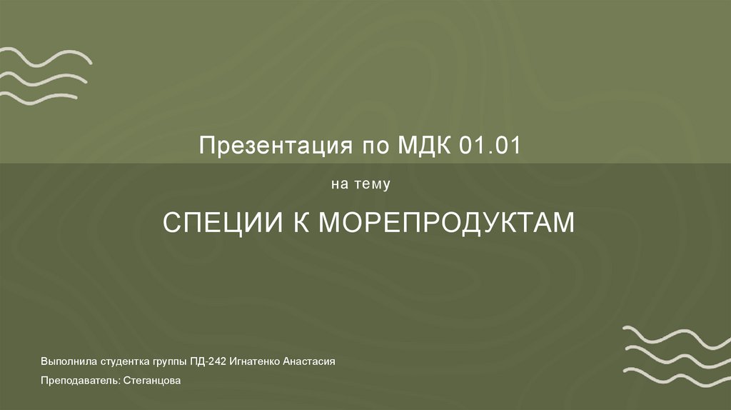 1. Презентация по МДК 01.01 на тему СПЕЦИИ К МОРЕПРОДУКТАМ