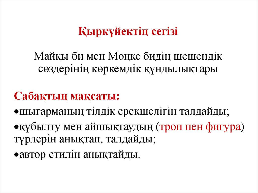 1. Қыркүйектің сегізі Майқы би мен Мөңке бидің шешендік сөздерінің көркемдік құндылықтары