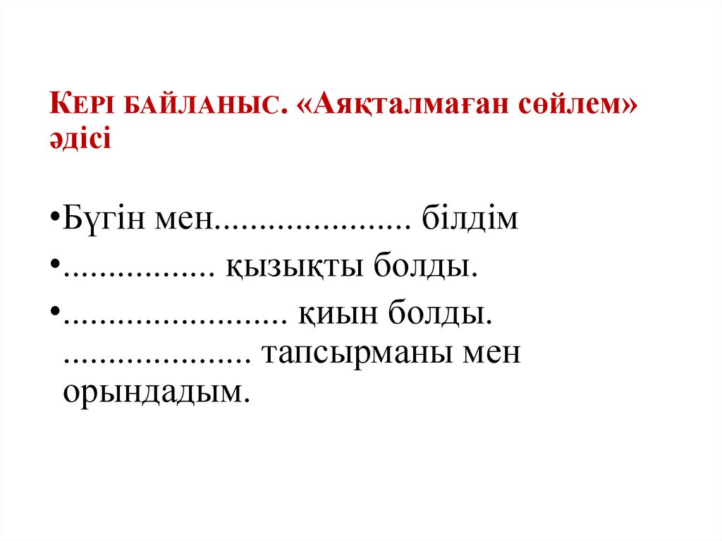 КЕРІ БАЙЛАНЫС. «Аяқталмаған сөйлем»әдісі