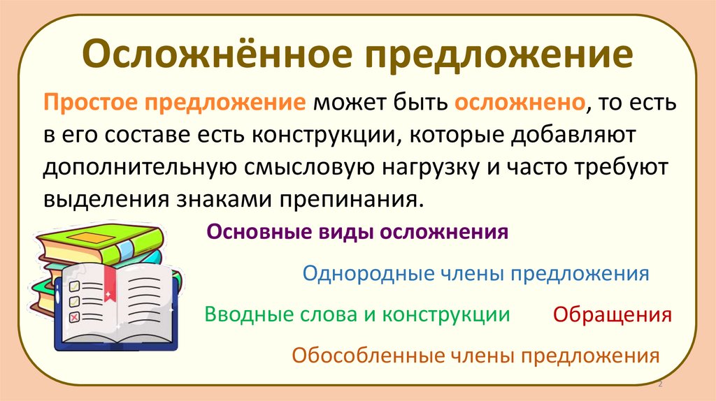 Осложнённое предложениеПростое предложение может быть осложнено, то есть
