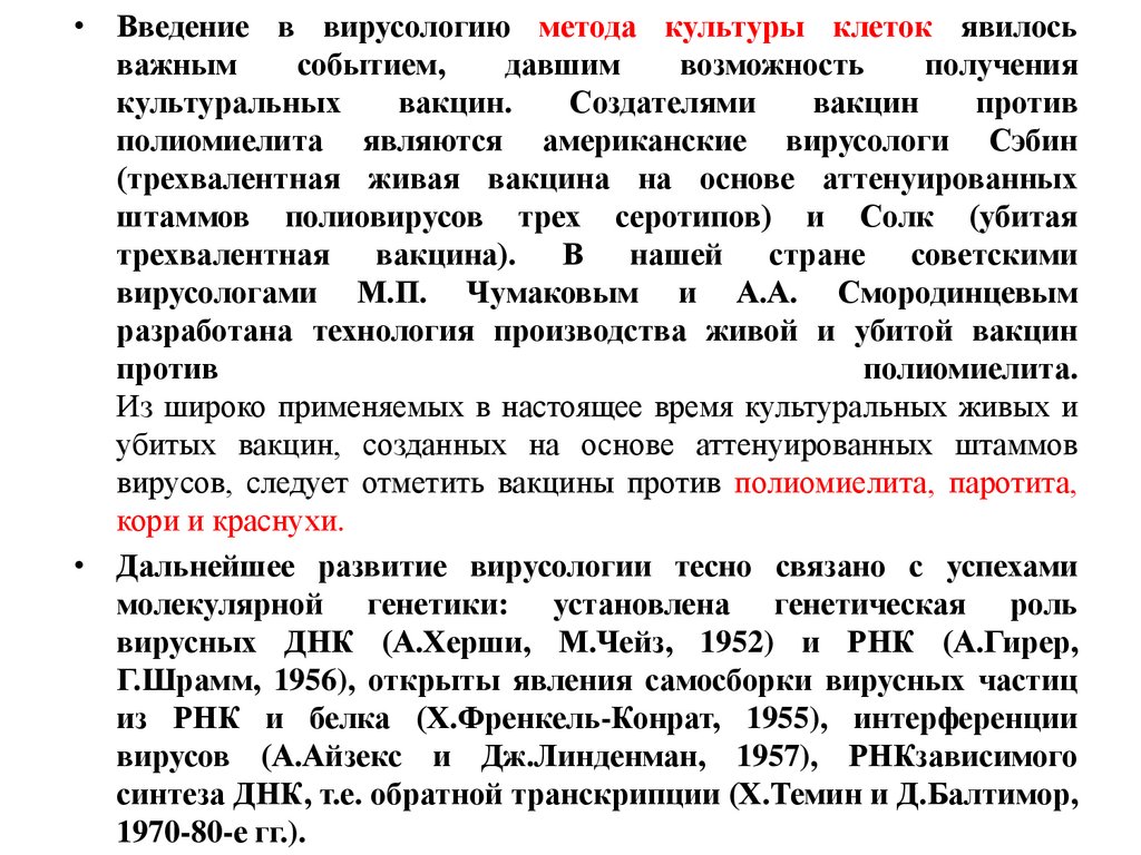 гриппа, оспы, лейкоза, саркомы кур и некоторым другим вирусам. И в настоящее время