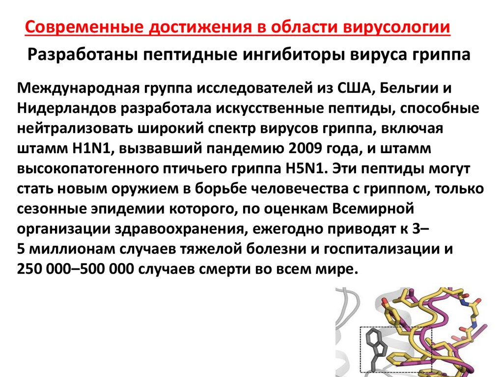 Современные достижения в области вирусологииРазработаны пептидные ингибиторы вируса гриппа