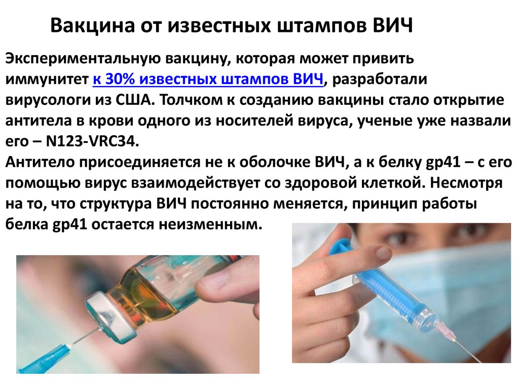 Вакцина от известных штампов ВИЧЭкспериментальную вакцину, которая может привить