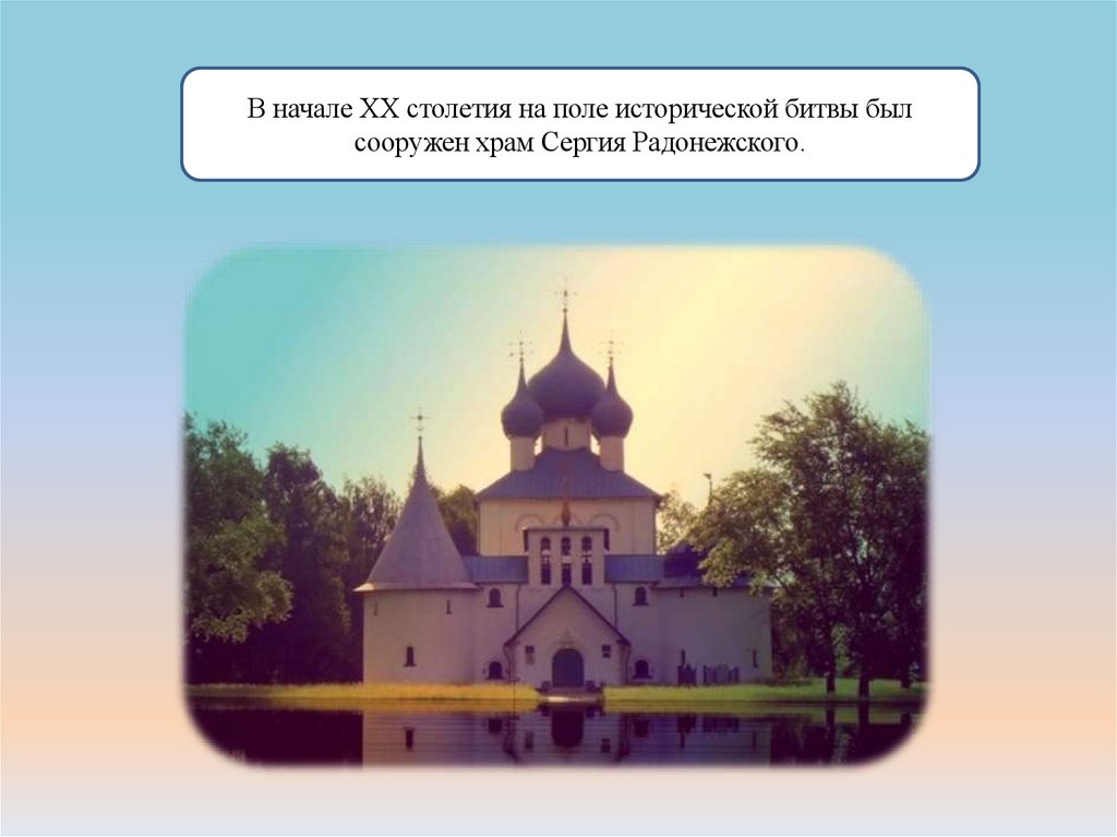 В начале XX столетия на поле исторической битвы былсооружен храм Сергия Радонежского.