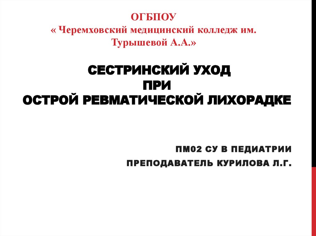 ПРЕПОДАВАТЕЛЬ КУРИЛОВА Л.Г.