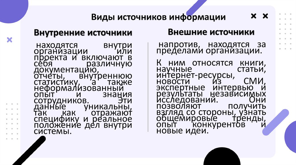 Виды источников информацииВнутренние источники