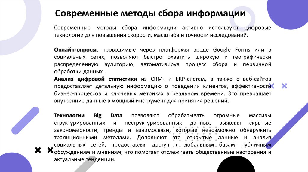 Современные методы сбора информацииСовременные методы сбора информации активно используют цифровые