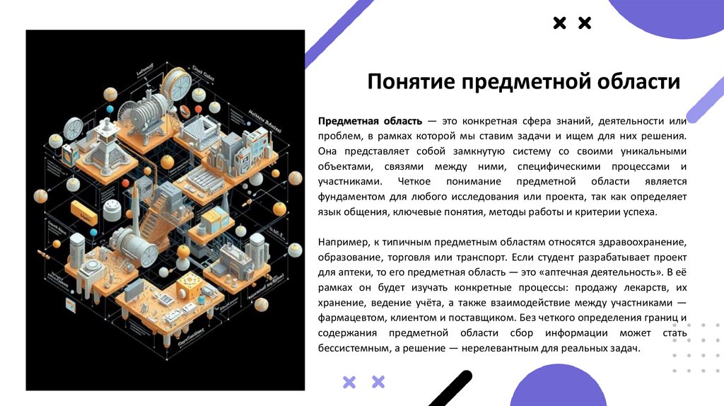 Понятие предметной областиПредметная область — это конкретная сфера знаний, деятельности или