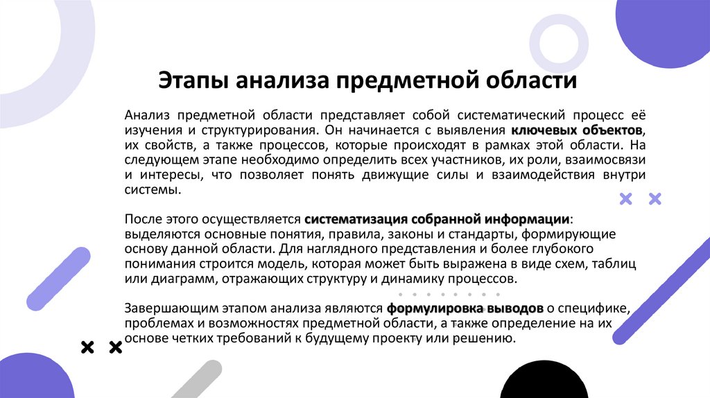 Этапы анализа предметной областиАнализ предметной области представляет собой систематический процесс её