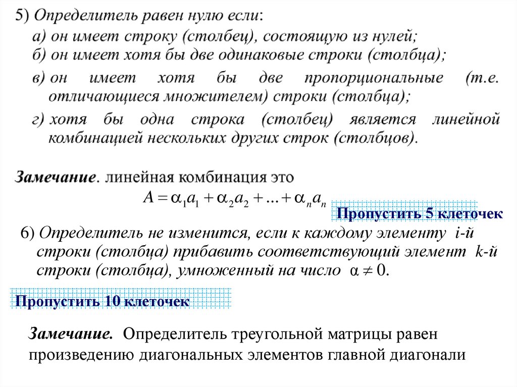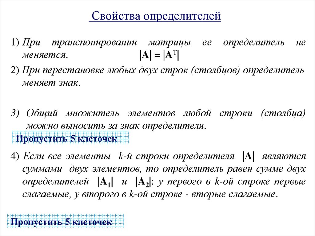 Свойства определителей