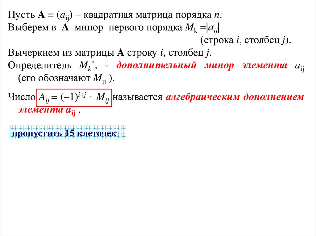 Число Aij = (–1)i+j · Mij называется алгебраическим дополнением