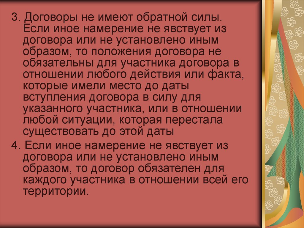 3. Договоры не имеют обратной силы.Если иное намерение не явствует из