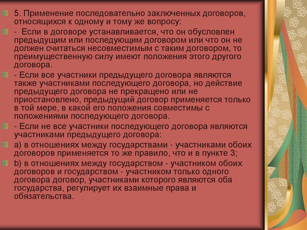 5. Применение последовательно заключенных договоров,относящихся к одному и тому же вопросу:
