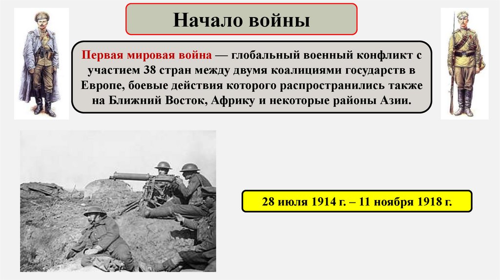 Начало войныПервая мировая война — глобальный военный конфликт с