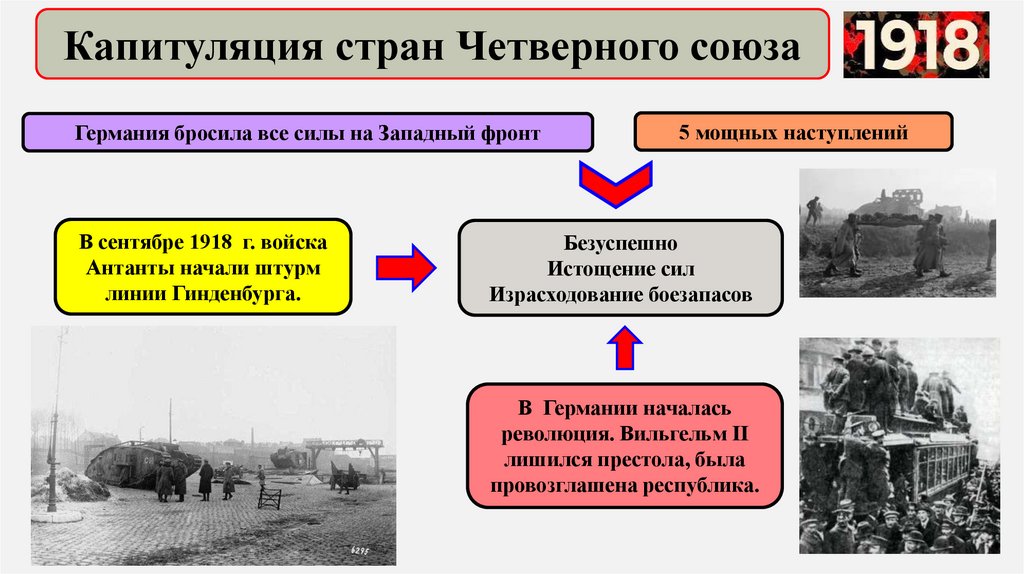 Капитуляция стран Четверного союзаГермания бросила все силы на Западный фронт