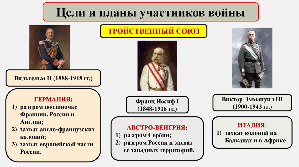 Цели и планы участников войныТРОЙСТВЕННЫЙ СОЮЗ