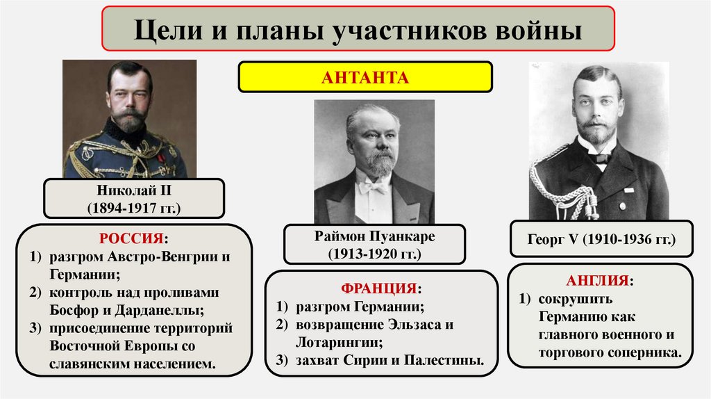 Цели и планы участников войныАНТАНТА