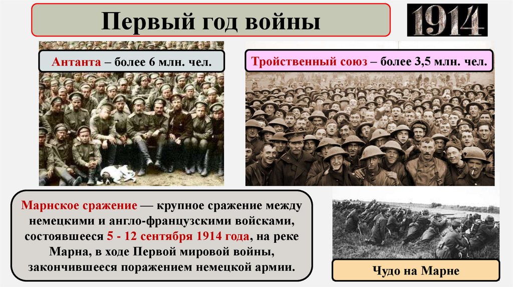 Первый год войныАнтанта – более 6 млн. чел.