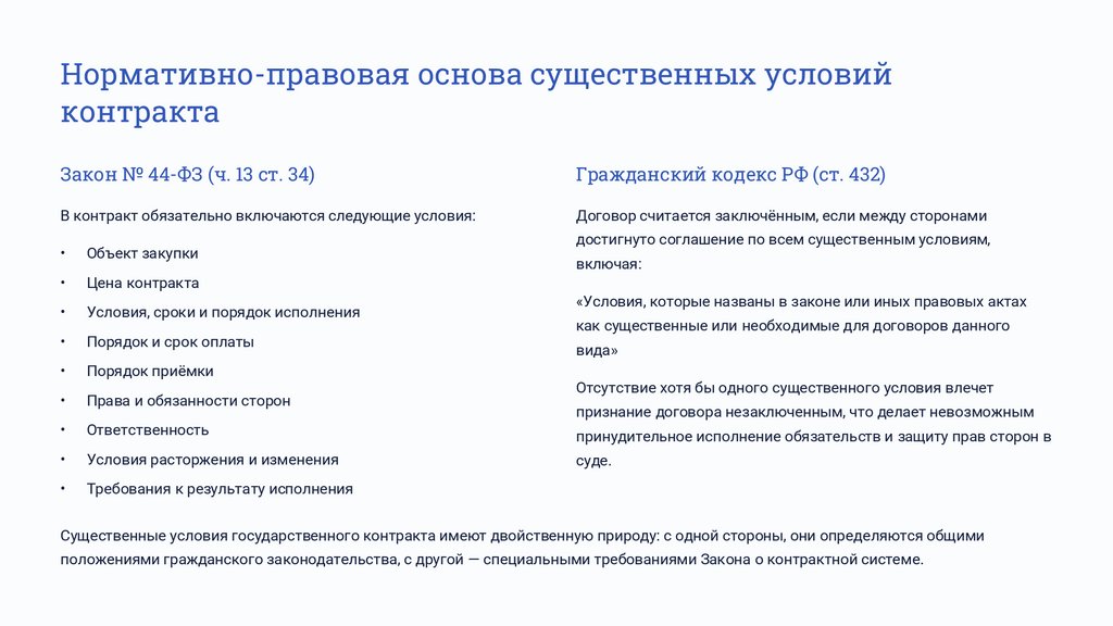 Существенные условия государственного контракта имеют двойственную природу: с одной стороны, они определяются общими