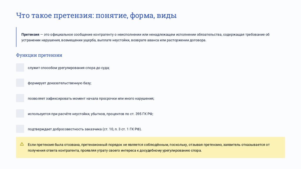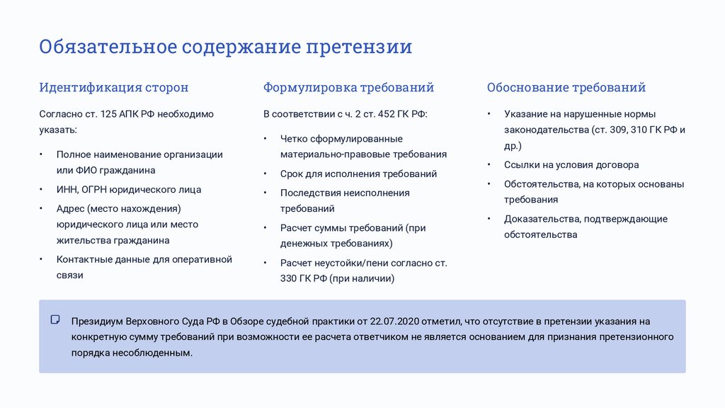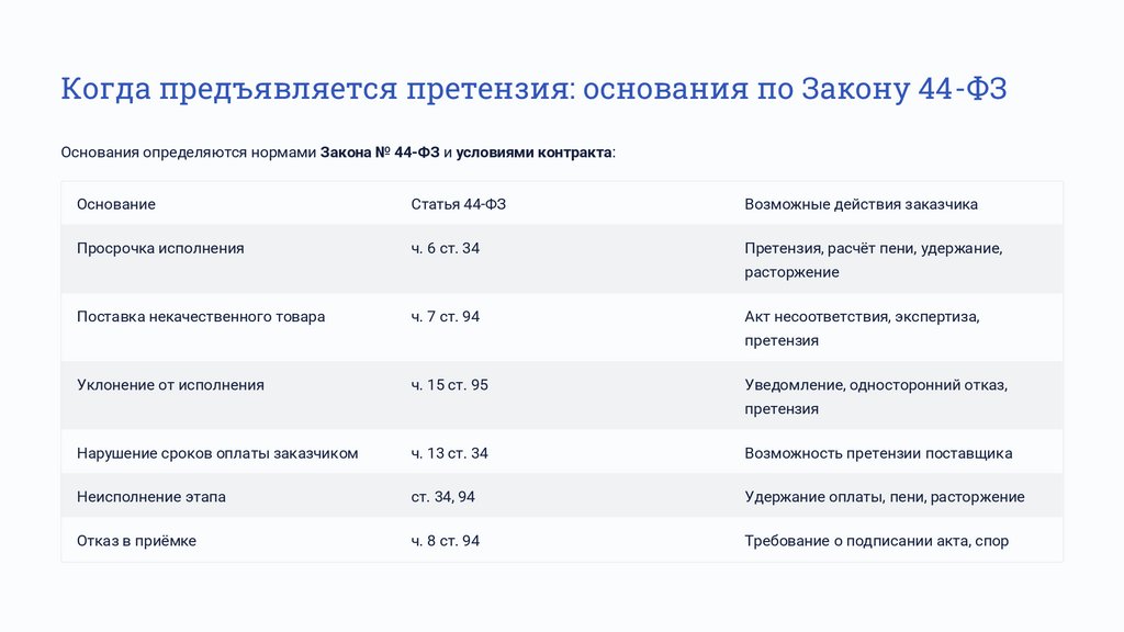 Форма по контракту или типовая (включает сумму, срок ответа, основания)
