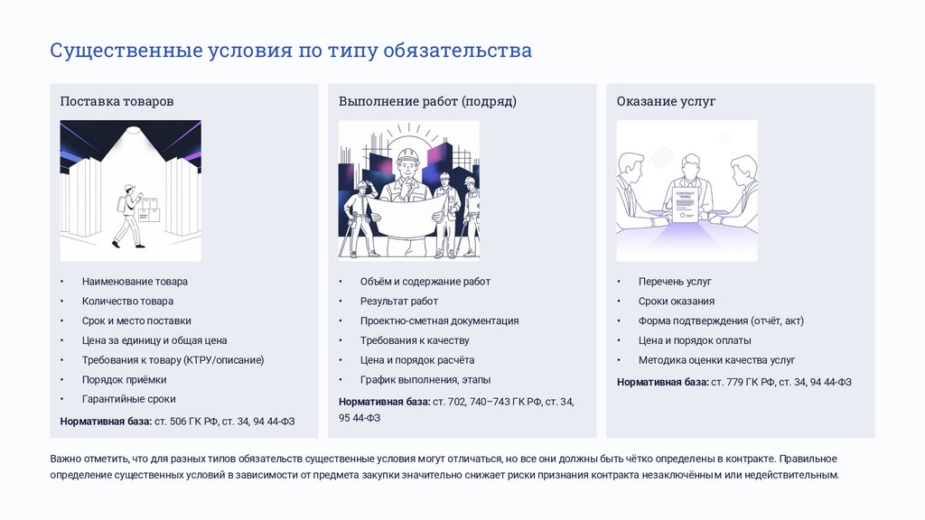 Важно отметить, что для разных типов обязательств существенные условия могут отличаться, но все они должны быть чётко определены в контракте. Правильное