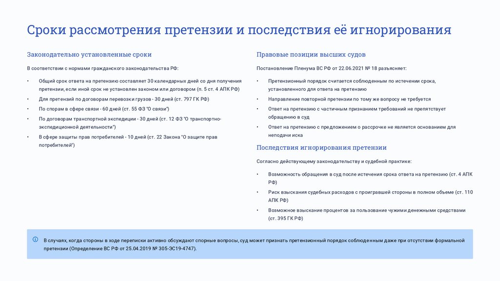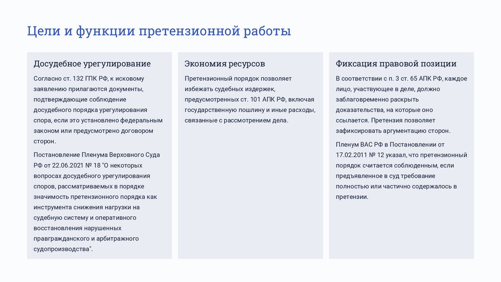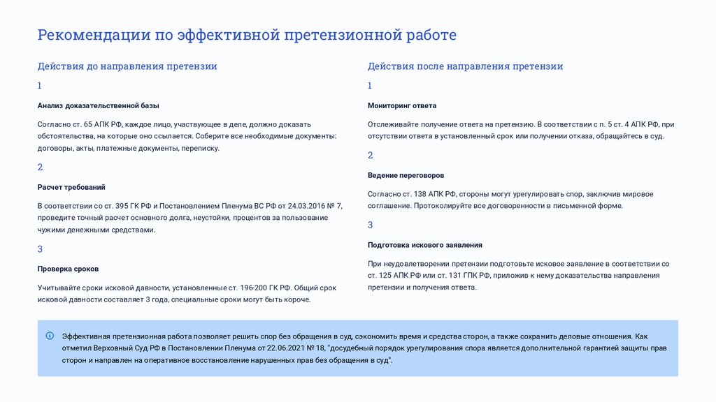 Эффективная претензионная работа позволяет решить спор без обращения в суд, сэкономить время и средства сторон, а также сохранить деловые отношения. Как