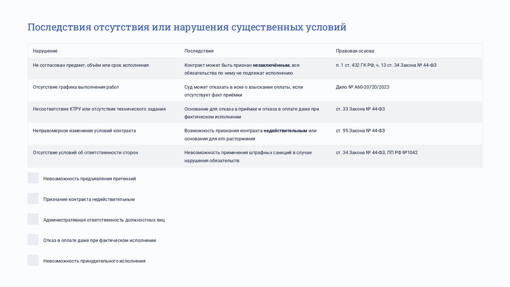 определение существенных условий в зависимости от предмета закупки значительно снижает риски признания контракта незаключённым или недействительным.