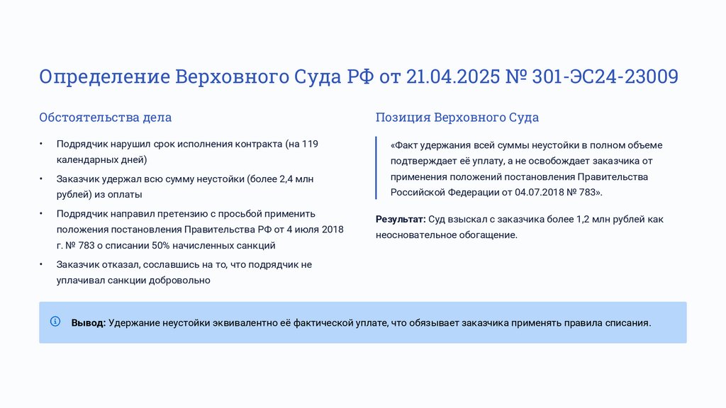 Вывод: Удержание неустойки эквивалентно её фактической уплате, что обязывает заказчика применять правила списания.