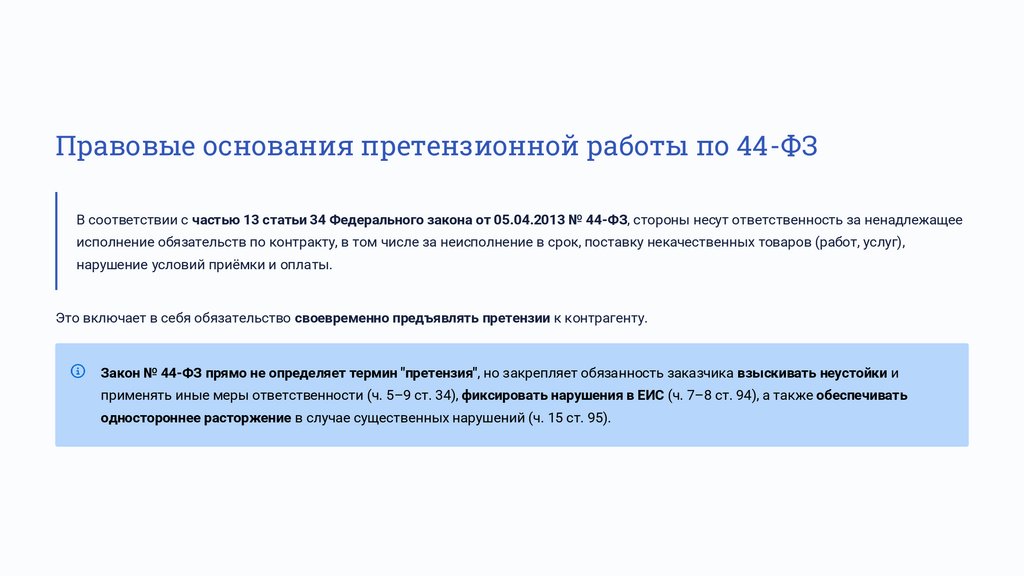 Нормативная база: ст. 506 ГК РФ, ст. 34, 94 44-ФЗ