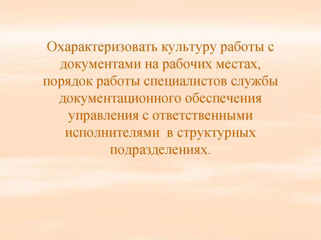 1. Охарактеризовать культуру работы с документами на рабочих местах, порядок работы специалистов службы документационного