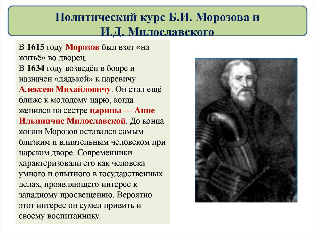 Политический курс Б.И. Морозова и