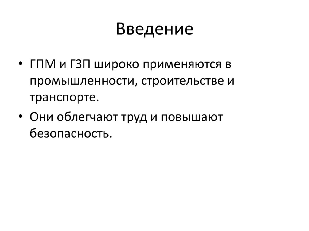 Введение• ГПМ и ГЗП широко применяются в
