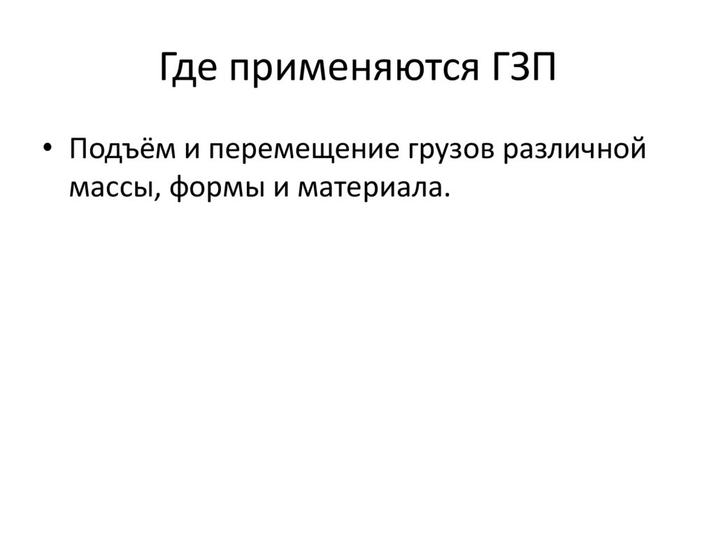 Где применяются ГЗП• Подъём и перемещение грузов различной