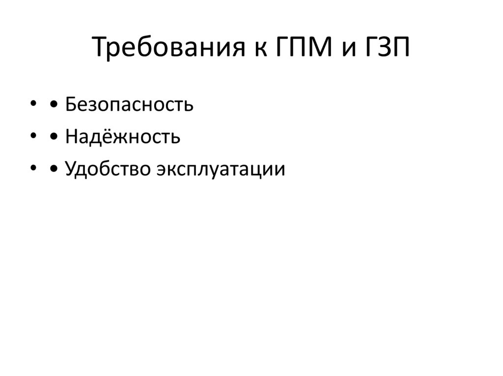 Требования к ГПМ и ГЗП• • Безопасность