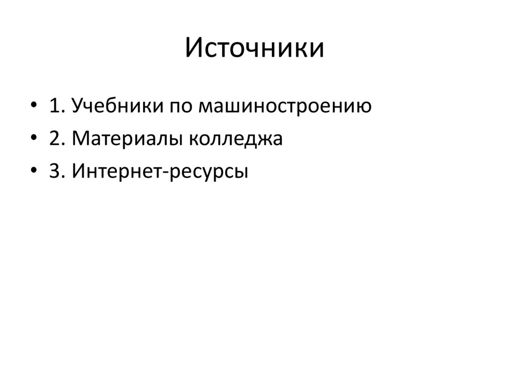 Источники• 1. Учебники по машиностроению