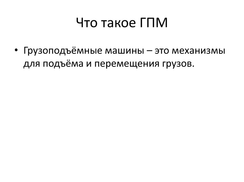 Что такое ГПМ• Грузоподъёмные машины – это механизмы