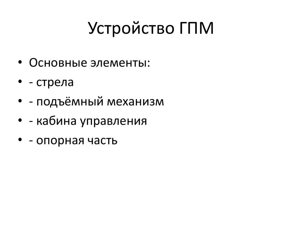 Устройство ГПМ• Основные элементы: