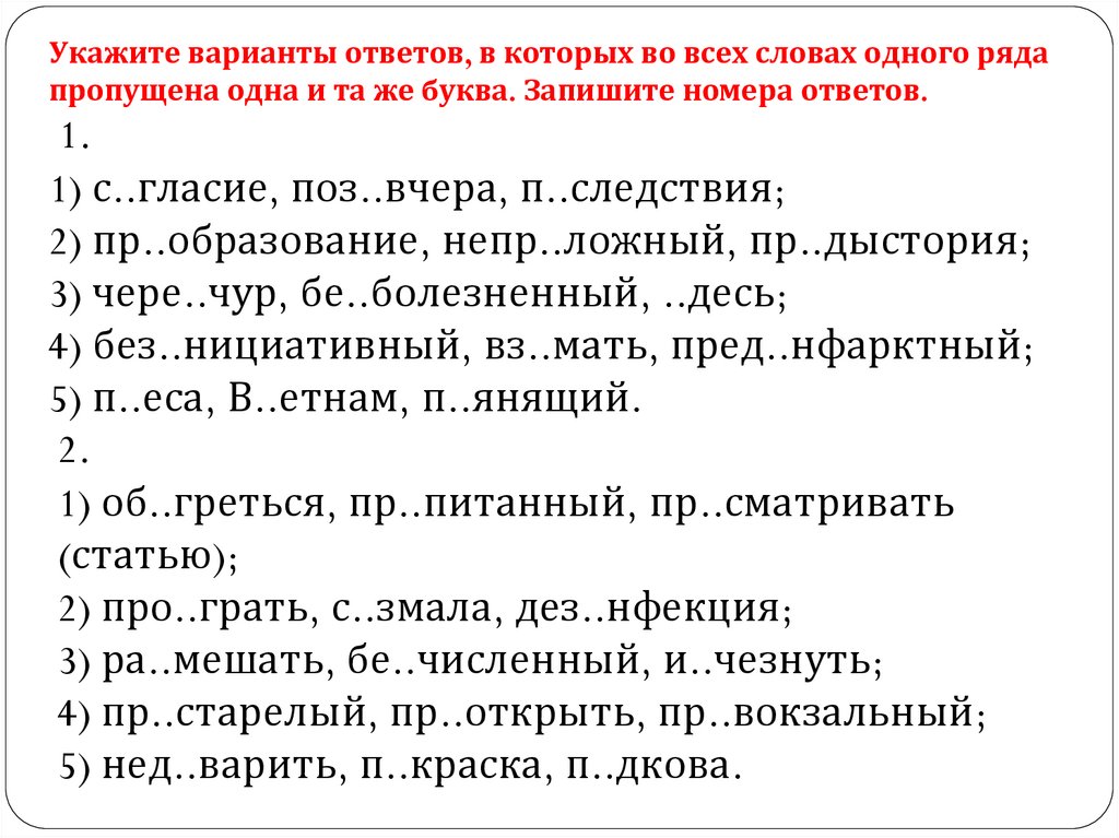 4) пр..старелый, пр..открыть, пр..вокзальный;