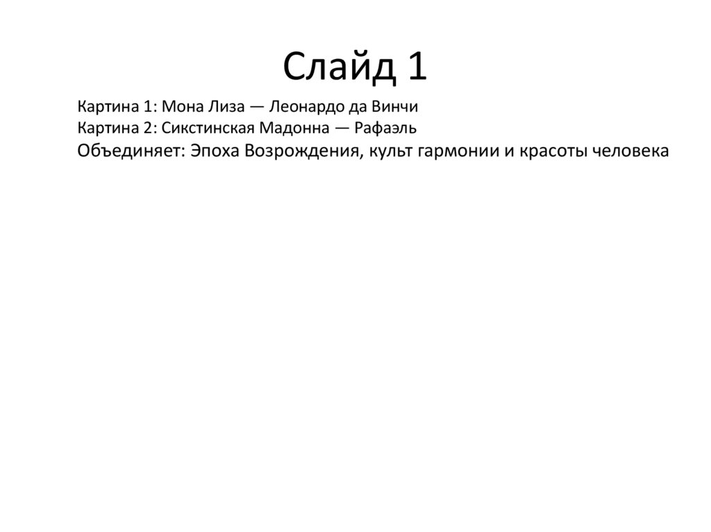 Объединяет: Эпоха Возрождения, культ гармонии и красоты человека