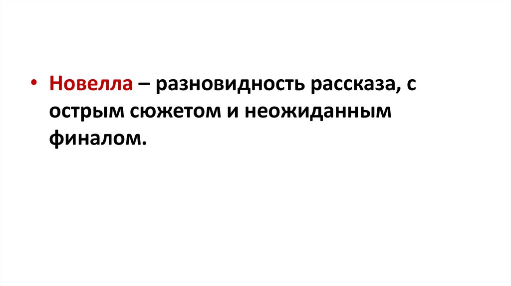 • Новелла – разновидность рассказа, сострым сюжетом и неожиданным