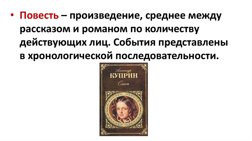 • Повесть – произведение, среднее междурассказом и романом по количеству