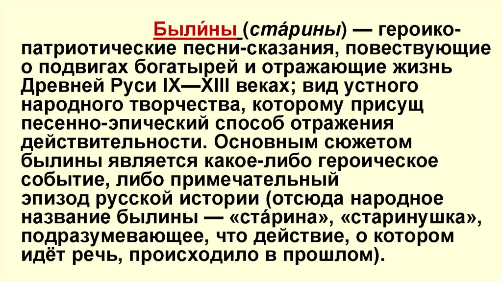 Эпос (по-гречески означаетповествование, рассказ) — род