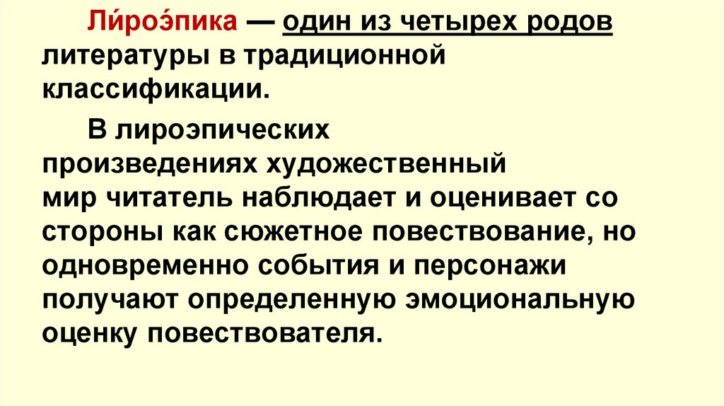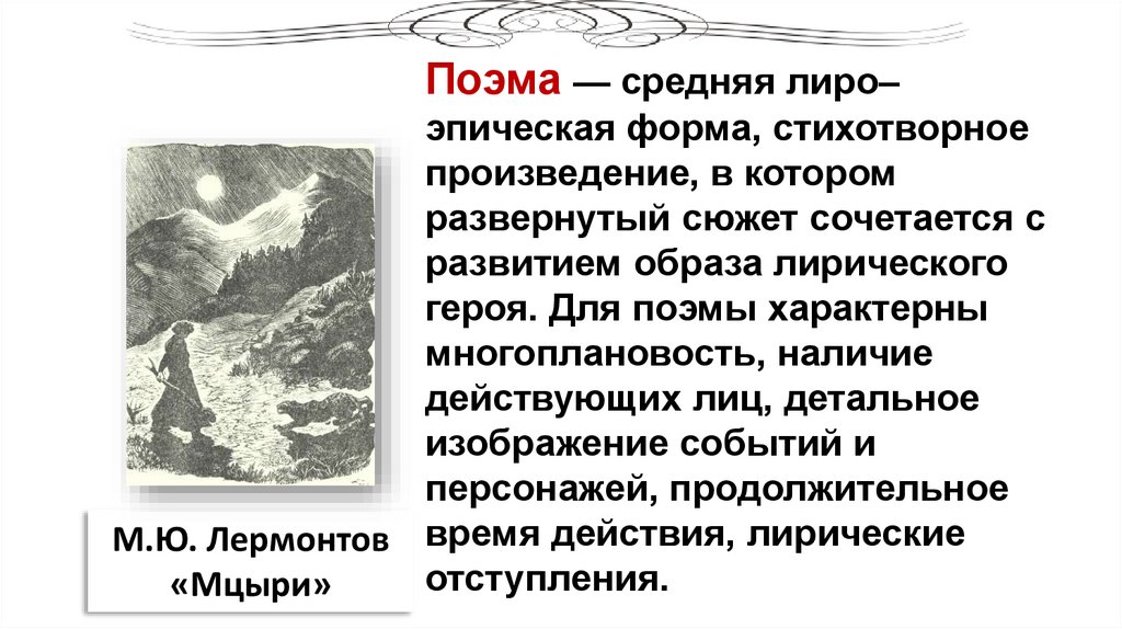 Поэма — средняя лиро–эпическая форма, стихотворное