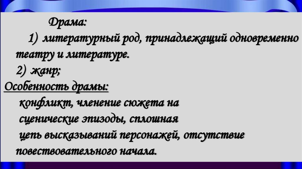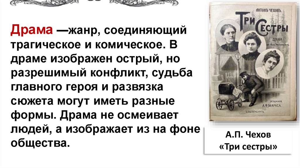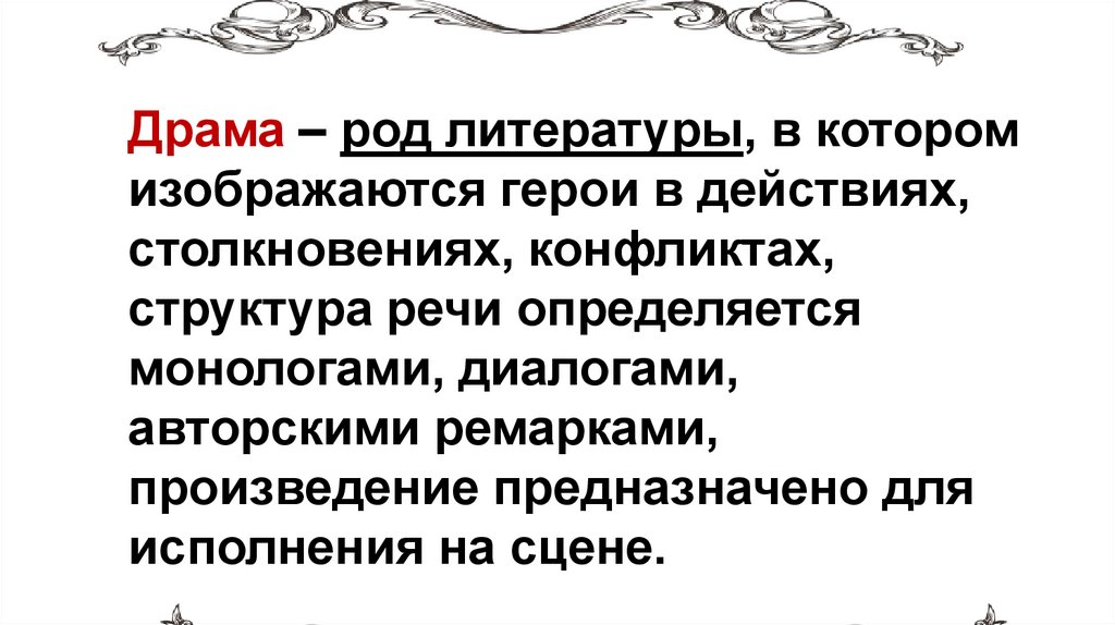 Драма —жанр, соединяющийтрагическое и комическое. В